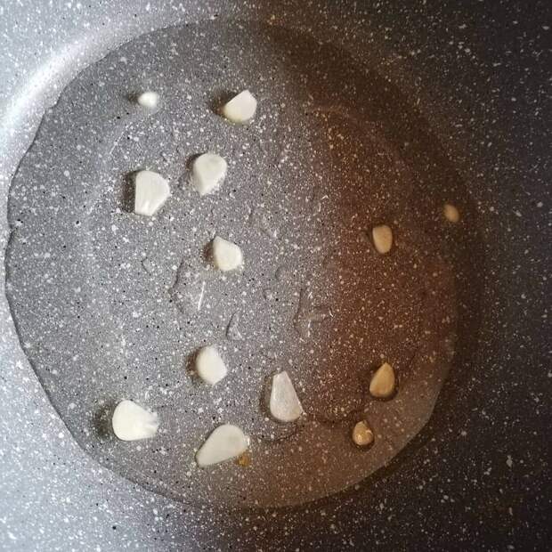 Первым этапом обжариваем чеснок, чтобы он отдал свой аромат
